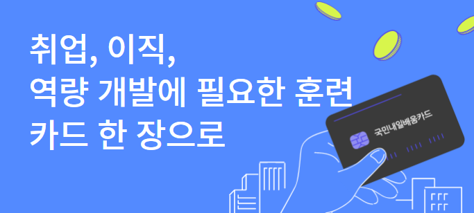국민내일배움카드는 취업, 이직, 역량 개발에 필요한 훈련을 카드 한 장으로 받을 수 있는 제도로서 HRD-NET 직업훈련포털에 회원가입을 하고 발급받을 수 있습니다.