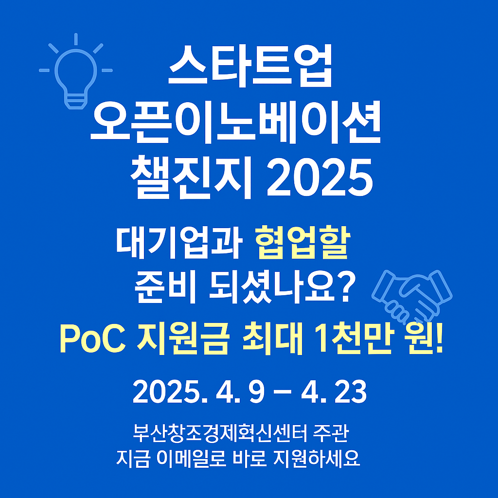 - 문의처: 부산창조경제혁신센터 글로벌오픈이노베이션팀 (051-749-8931)